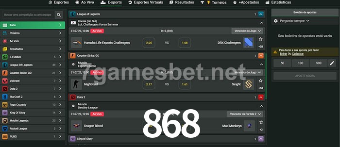 A aposta 868 oferece aos jogadores a experiência mais conveniente de apostas em eSports!